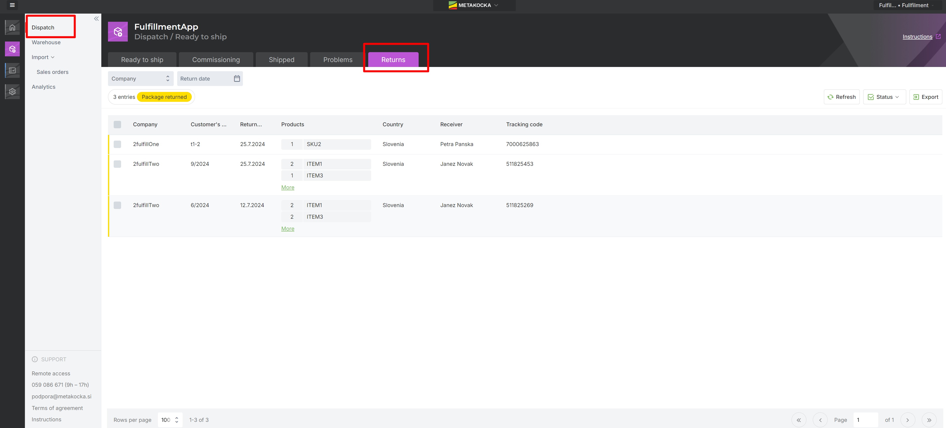 Además, el estado del paquete es visible para todos los involucrados en el proceso: el centro Fulfillment, a través de la aplicación de Fulfillment, y la empresa para la cual se realiza el servicio de gestión y distribución (fulfillment), en su perfil de usuario.