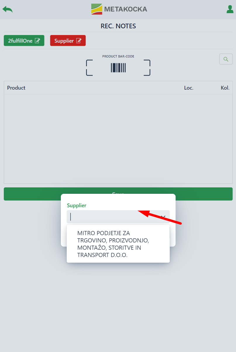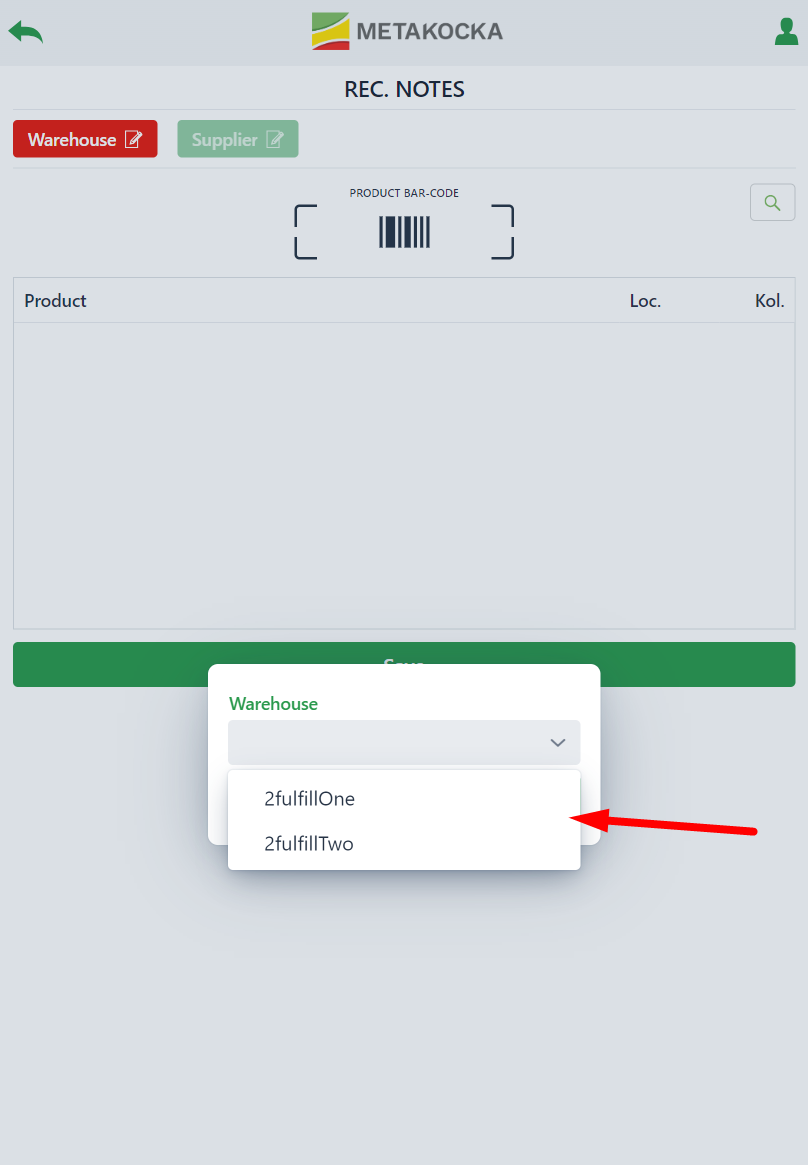 En la sección de almacén, selecciona la empresa para la cual recibiste los productos.