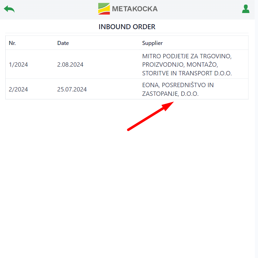 Si la empresa crea una orden de entrada (lista de productos que se recibirán) en su perfil,