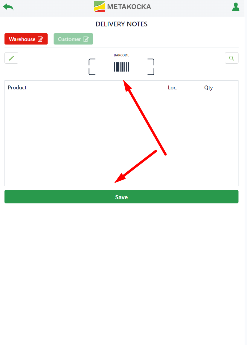 Documento utilizado para dar de baja una cierta cantidad de producto del stock por diferentes razones (ej. productos dañados). En el escáner móvil, selecciona Notas de entrega y escanea los productos.