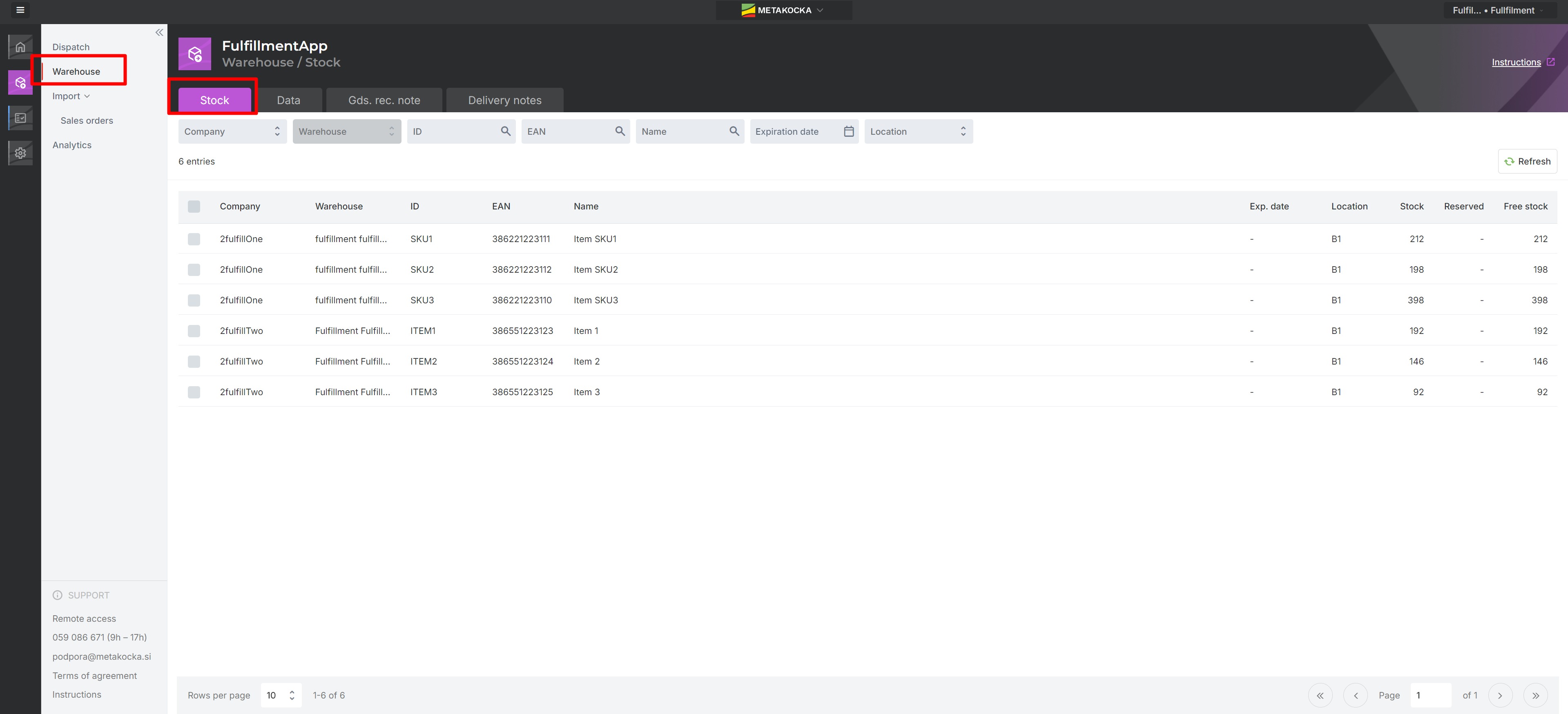 En la aplicación de Fulfillment, es posible visualizar el stock por empresa para la cual se presta el servicio.