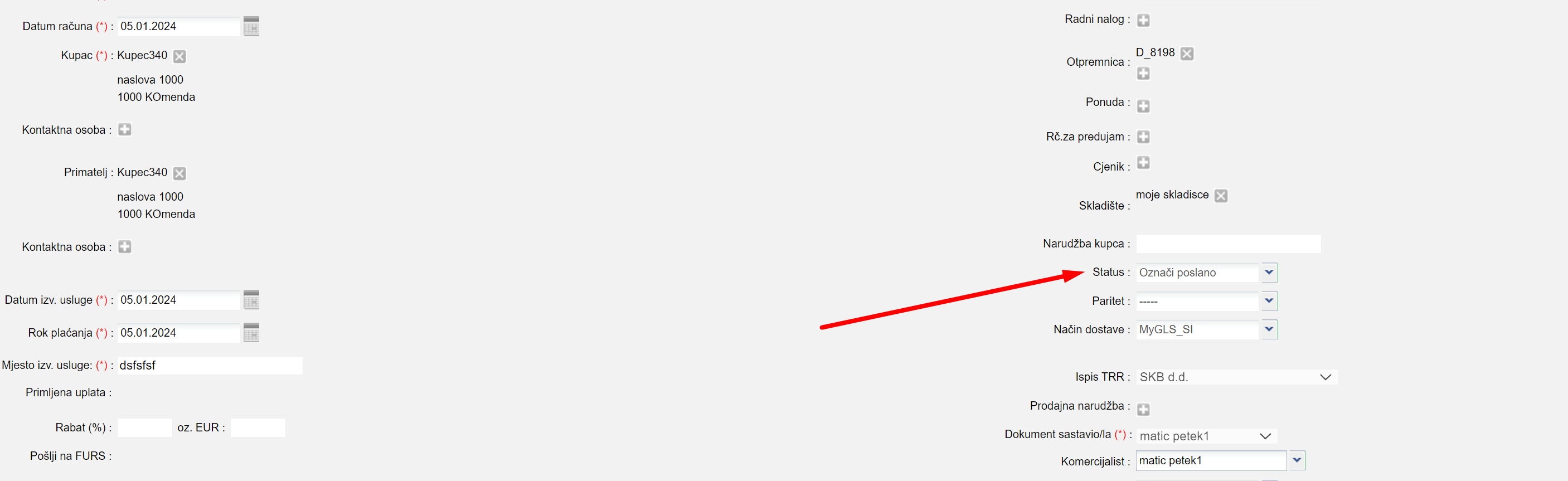 - račun dobija status na temelju postavki ''Prijenos na račun - status''