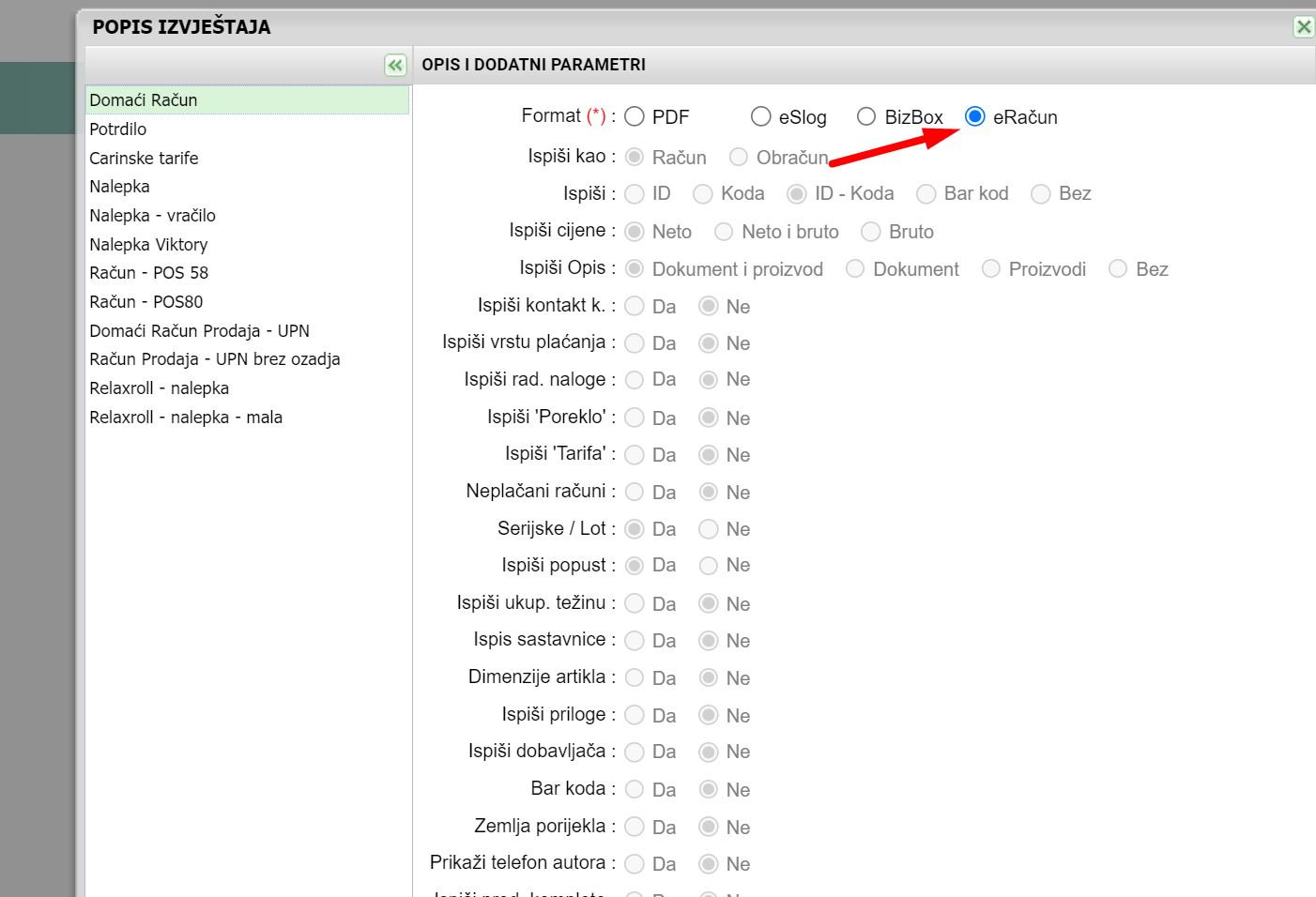 Ako je u pitanju proračunski korisnik, odaberite "eRačun UJP", u suprotnom ''eRačun''