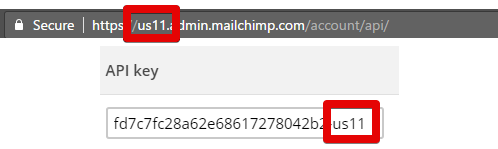 URL sadržava podatak o serveru na kojem se Vaš MailChimp račun nalazi, zato je isti potrebno prepisati iz URL adrese Vašeg računa ili iz zadnja 4 znaka Vašeg API ključa.