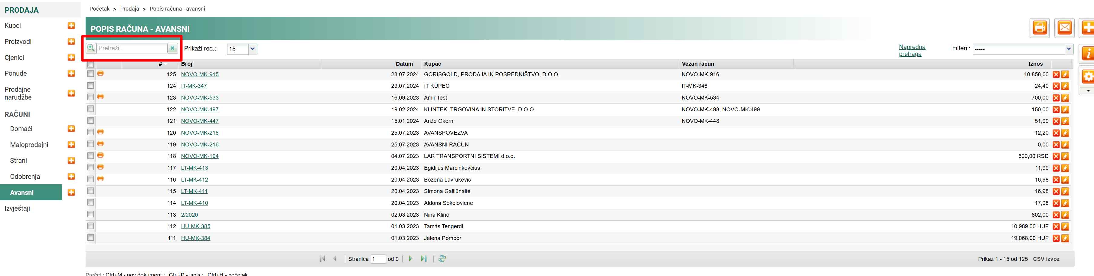 U polje za pretragu unesite broj/stranku i kada ga pronađete, otvorite ga.