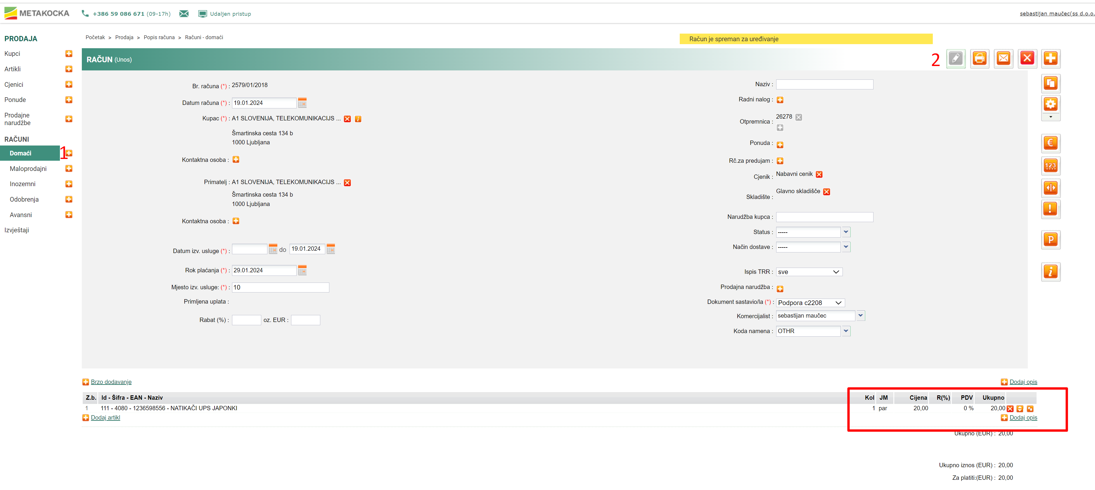!! U slučaju da je račun već izdan, promene na proizvodima morate urediti u Računi/domaći/strani