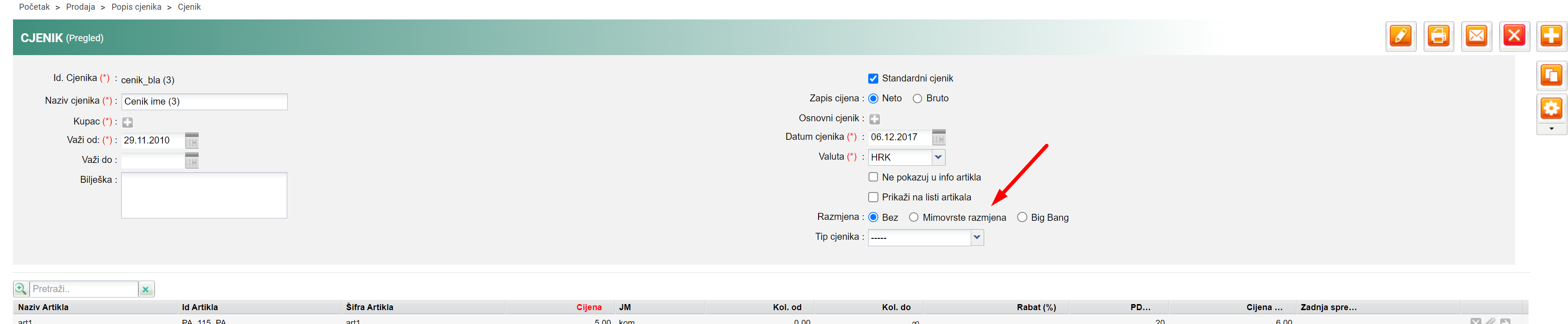 - Izradite novi cjenik i označite da je namijenjen razmjeni sa Mimovrste - pogledajte sliku ispod.