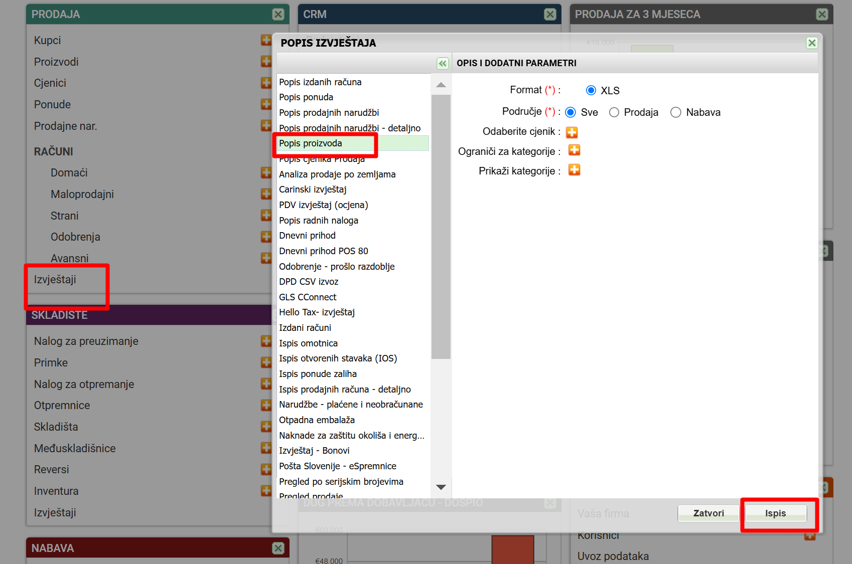 Kako bi svim proizvodima koje imate u MetaKocki dodali podatke za Intrastat (carinsku tarifu, težinu i državu porijekla), možete ispisati popis proizvoda iz MetaKocke.