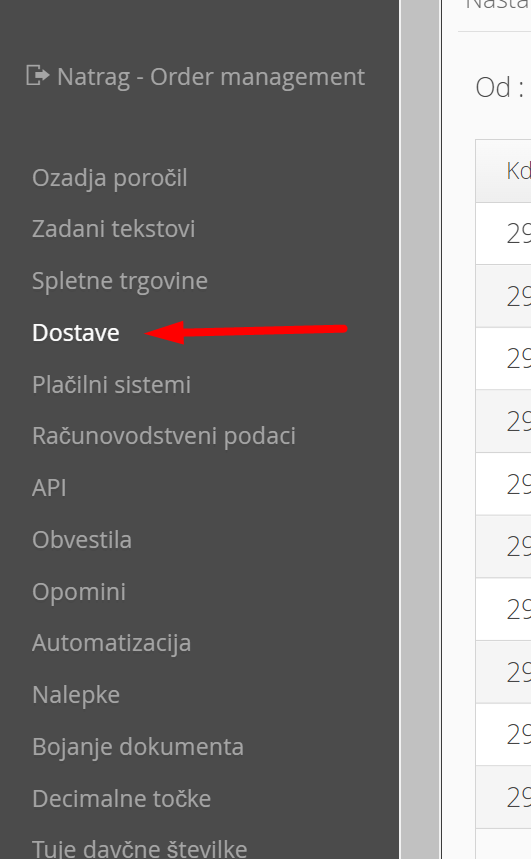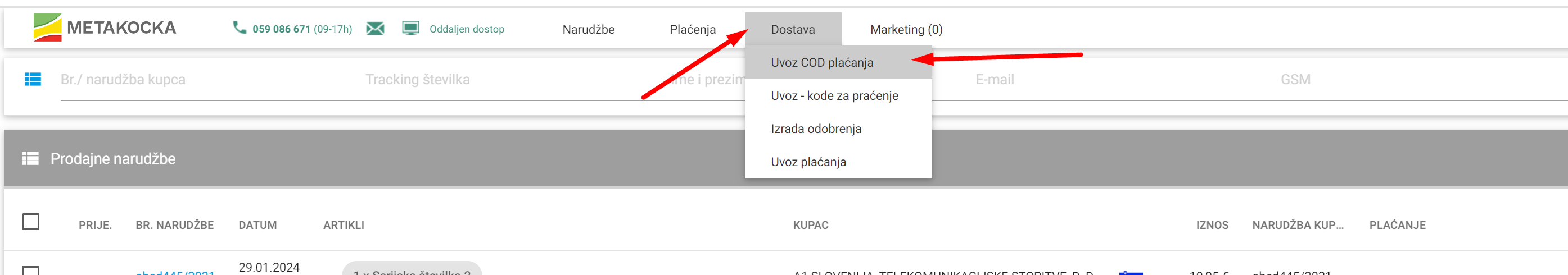 U Order Management-u idite u Dostava - Uvoz COD plaćanja