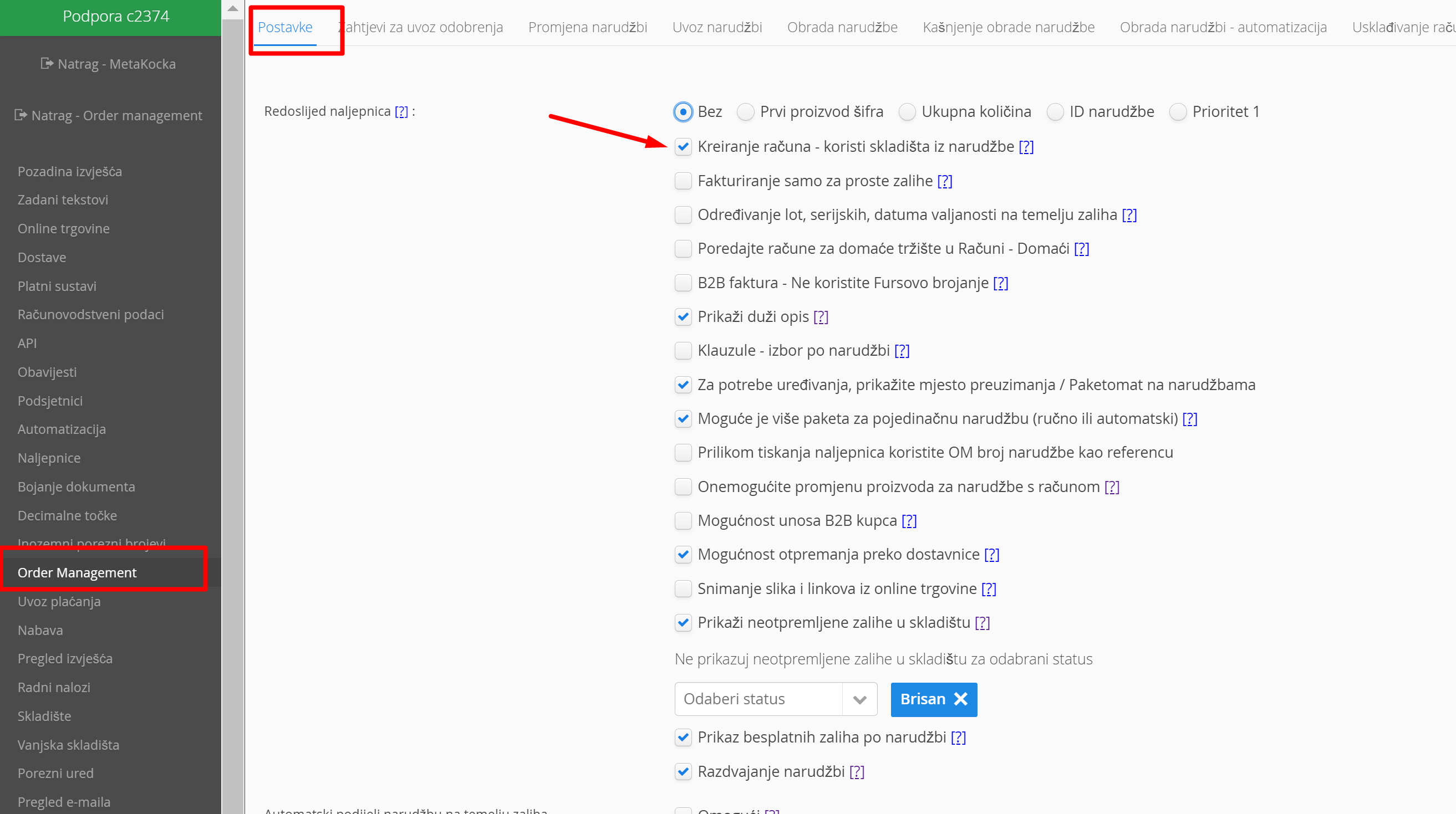 Kada podesite skladišta za online trgovinu u Dodatnim postavkama - Order Managment, gdje štiklirate kreiranje računa - koristi skladišta iz narudžbe