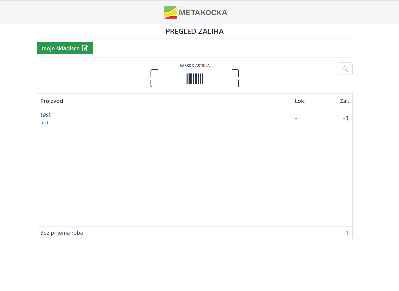 Na ekranu se prikaže pročitan kod kao i zalihe u skladištu za proizvod koji ste skenirali