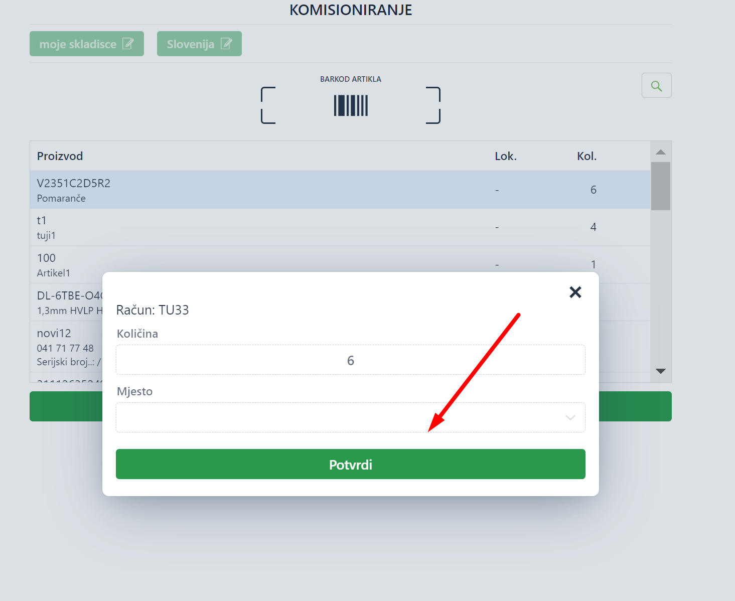 Započnite sa skeniranjem i potvrdite da ste ih preuzeli u skladištu.