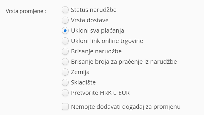 Opcija “Nemojte dodavati događaj za promjenu”, je korisna u slučaju da ne želite ponovno poslati e-mail/SMS poruke korisniku (ako slučajno imate uključen takav način obavještavanja korisnika)
