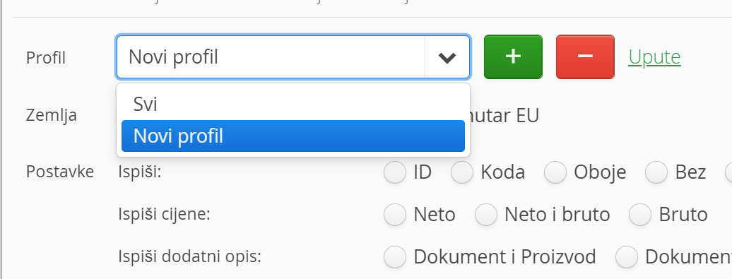 Klikom na + dodajte nov profil i odredite ispise na računu.