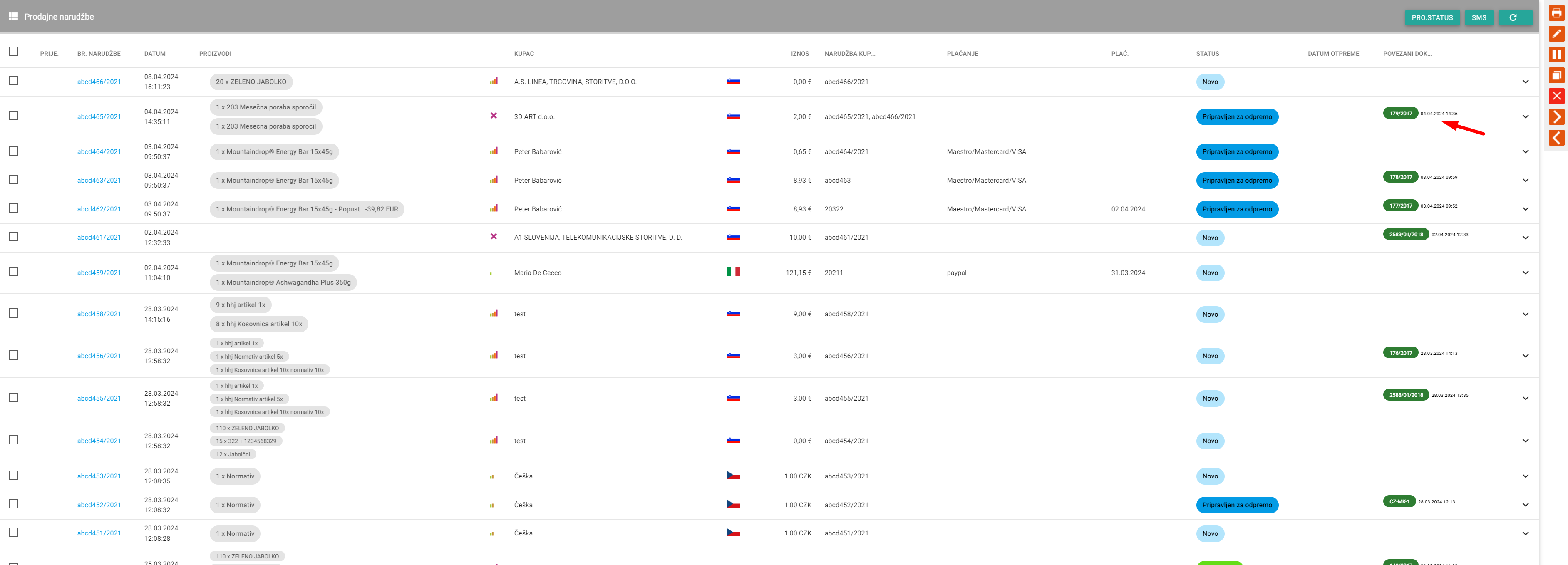 Funkcionalnost omogućava prikaz datuma i vrijeme izdavanja računa u popisu prodajnih narudžbi.