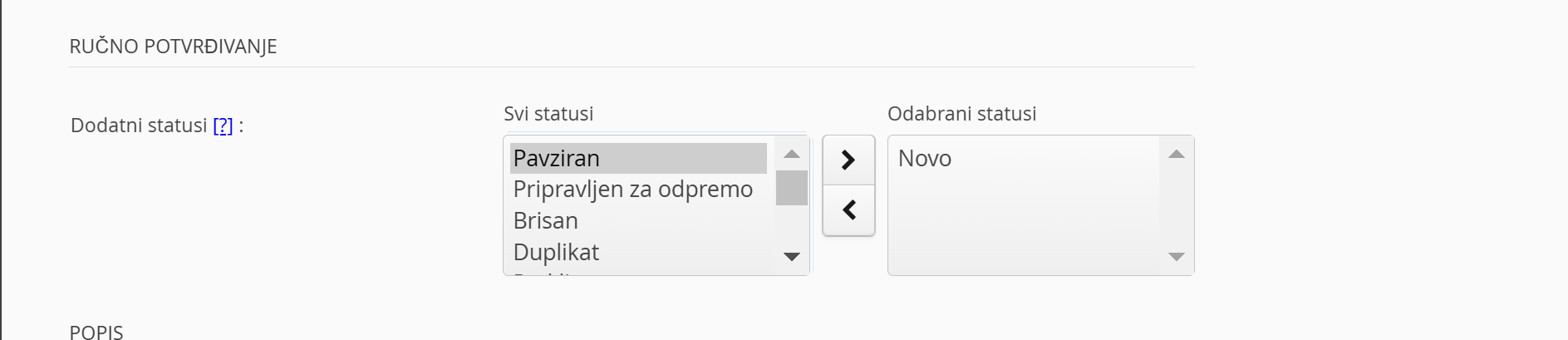 Ručno Potvrđivanje - Dodatni statusi Print