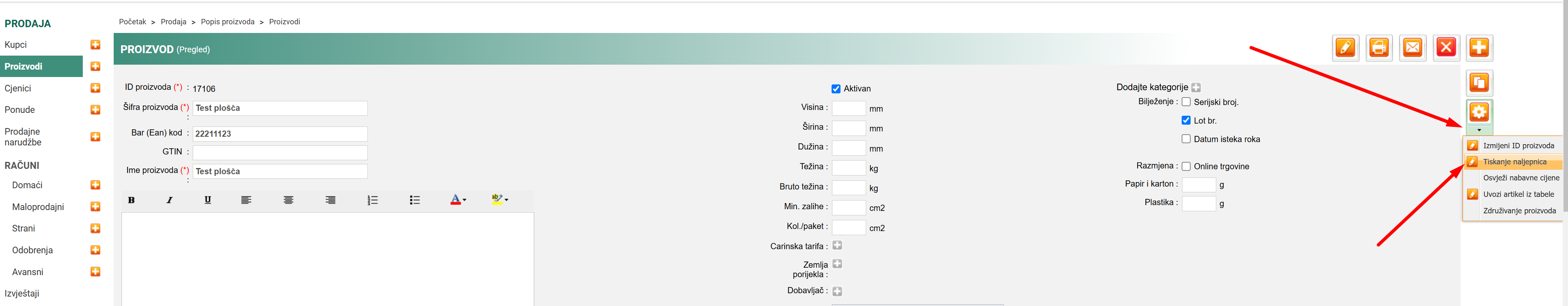 Na stranici proizvoda će Vam se prikazati "prozor" u koji možete upisati podatke deklaracije; nakon upisa, spremite promjene.