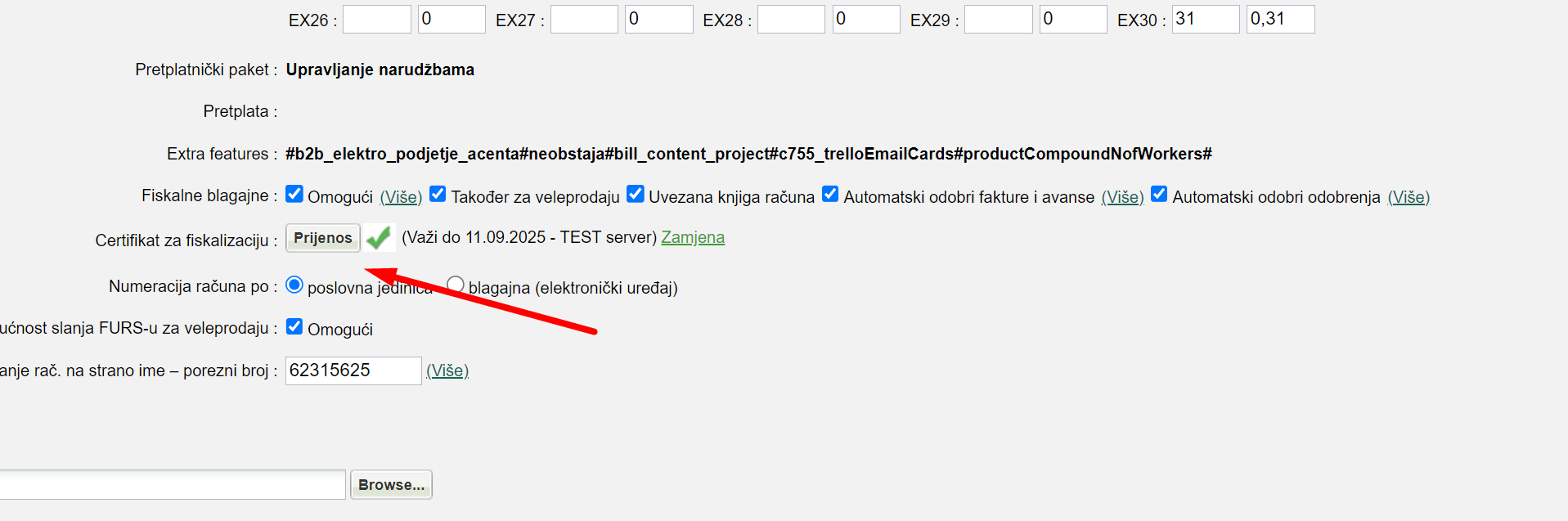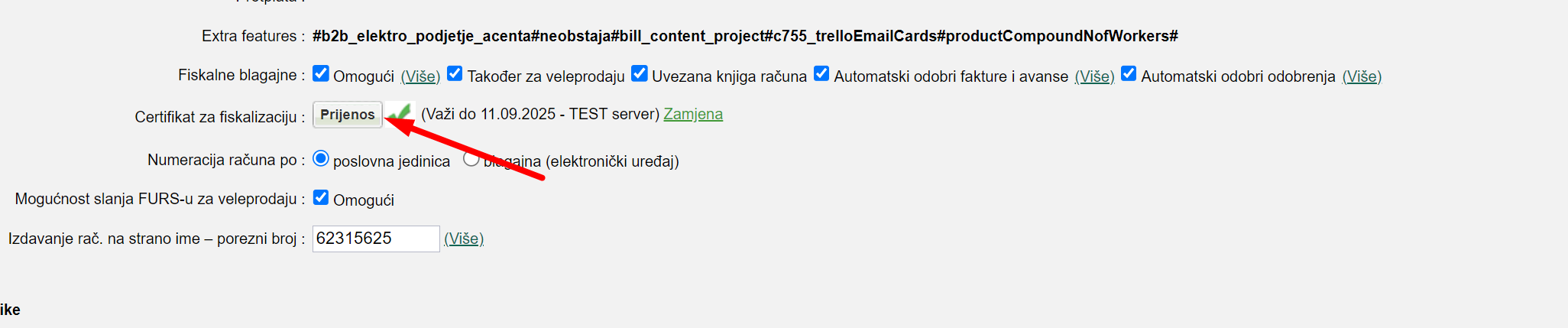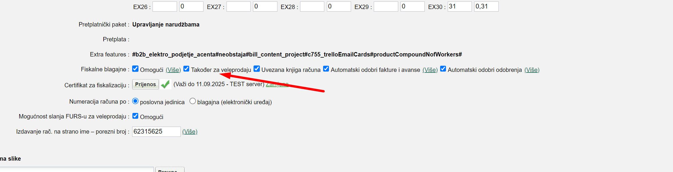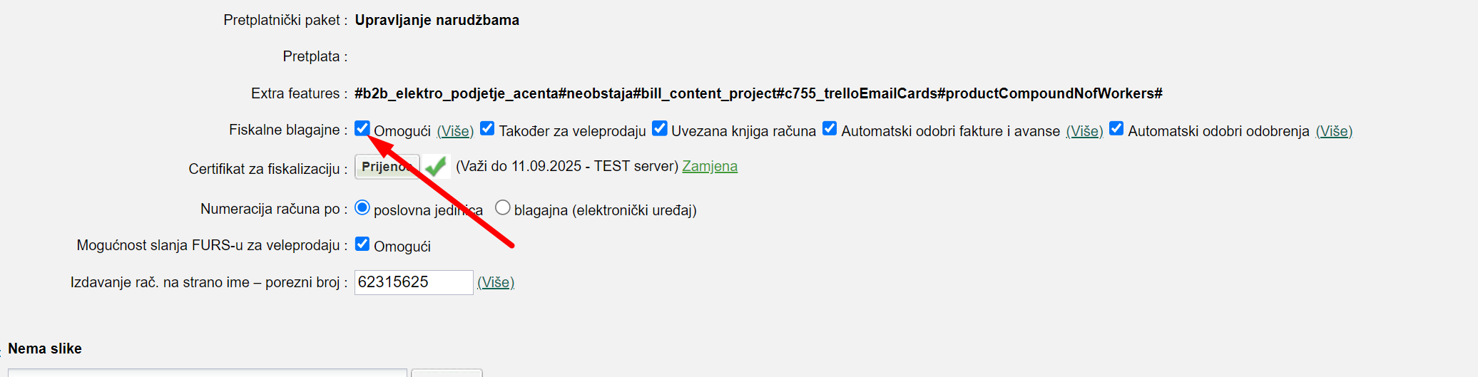 Funkcionalnost aktivirajte pod Postavke/Vaša firma