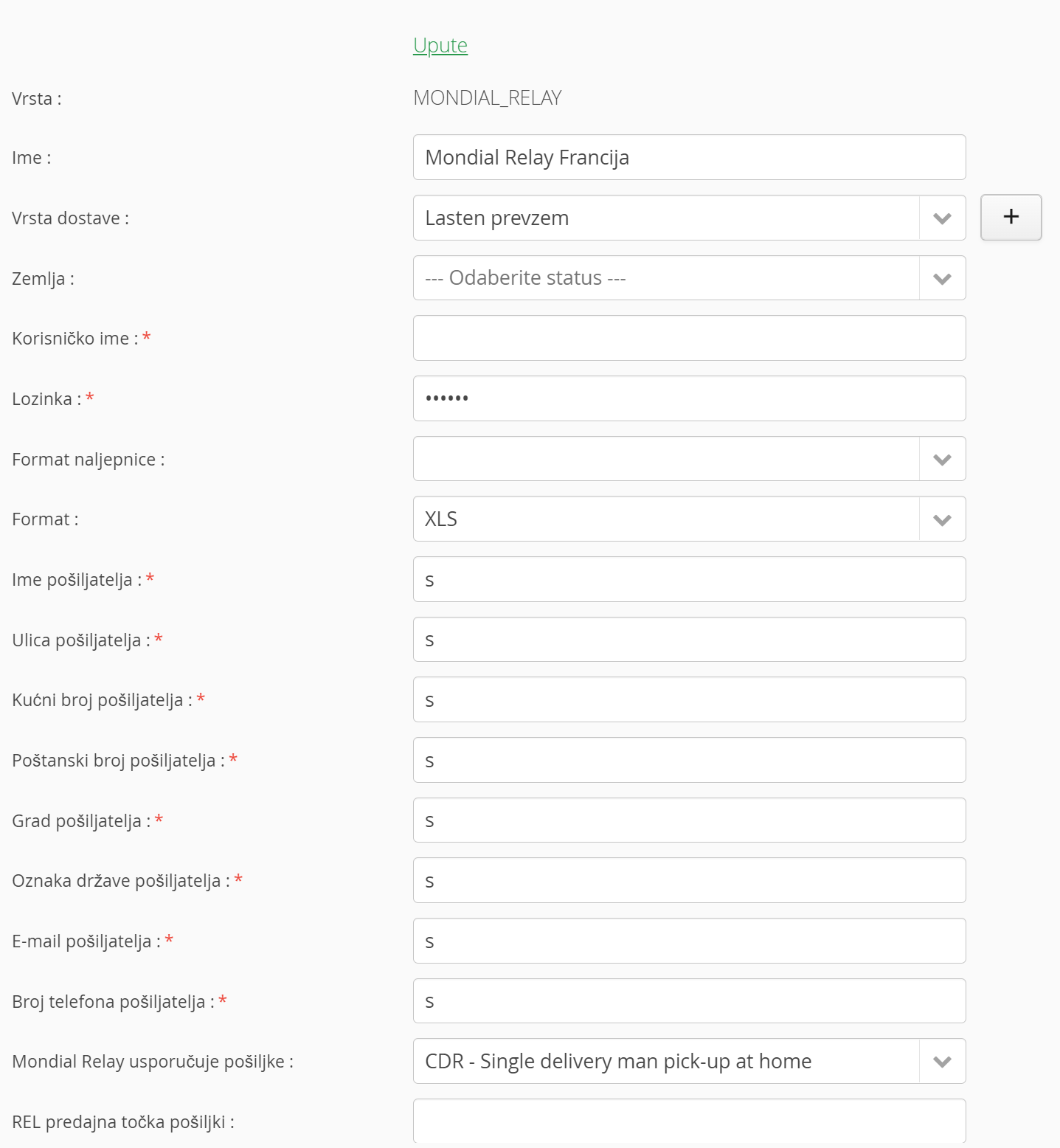3. Upišite zahtjevane podatke, koje ste primili od strane Mondial Relay-a,