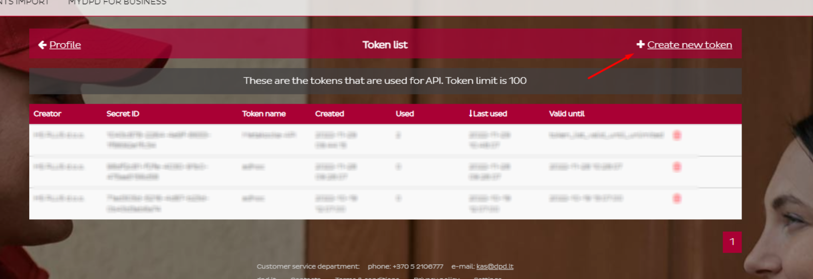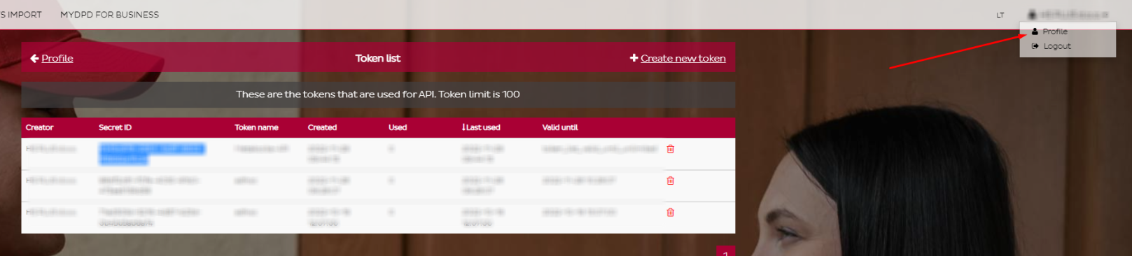 API KEY i Secret ID ćete dobiti u DPD profilu: