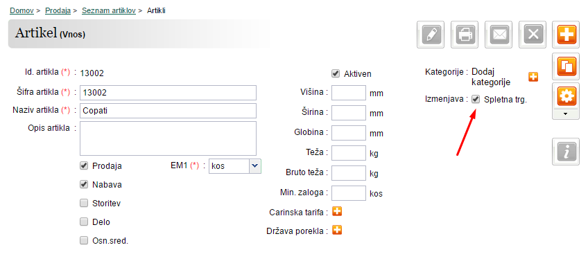 Artikli, ki se bodo ujeli preko sinhronizacije (ali s sinhronizacijo artiklov ali preko novih naročil) bodo avtomatsko postali označeni za izmenjavo - "Spletna trg.".