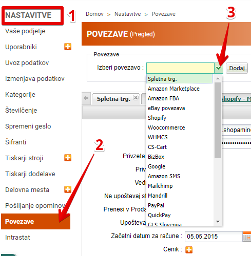 V Nastavitve > Spletne povezave si dodate novo "Spletno trgovino".