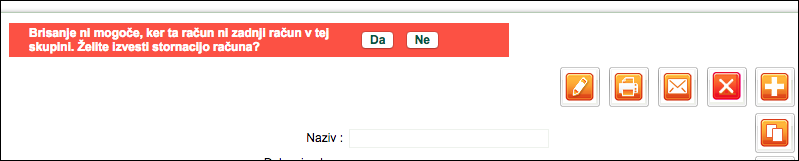 Stornacijo računa je mogoče tudi odstraniti, tako da izberete račun, gumb "Orodja" ter možnost "Odstrani stornacijo".