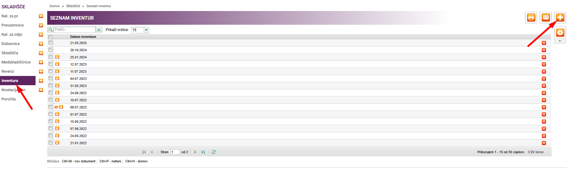 Izberite inventuro kot kaže zgornja slika, kliknite na printer in izpišite poročilo.