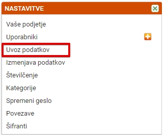 1. Nastavitve/Uvoz podatkov