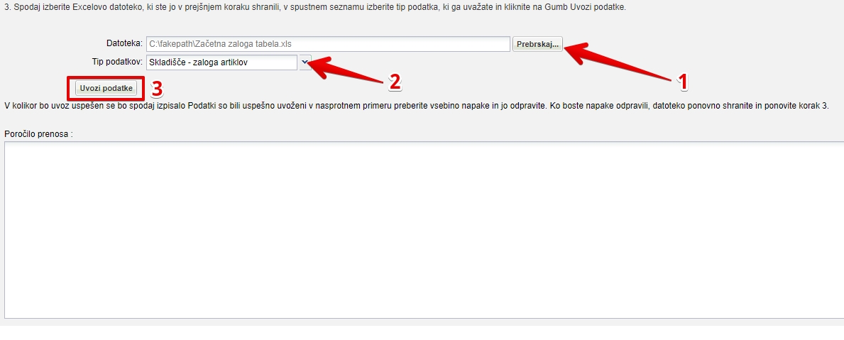 V nastavitvah/uvoz podatkov pod točko 3. uvozimo tabelo z začetno zalogo.