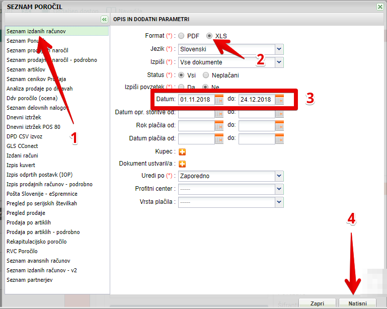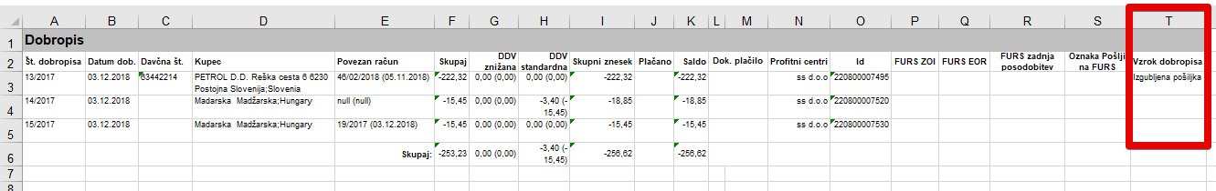 Pod "Vzrok" izberete možnosti dobropisa (Vzroke lahko dodate v šifratih)