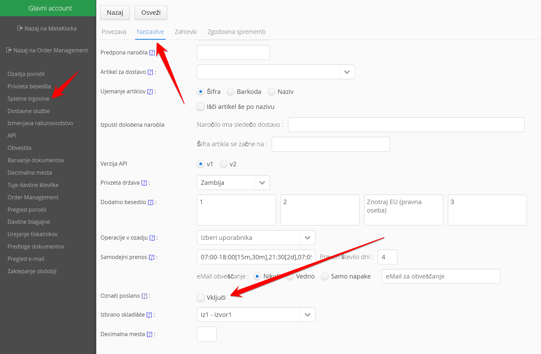 - (za ime dostavne službe pokličite na podporo, da naredimo ustrezno nastavitev)