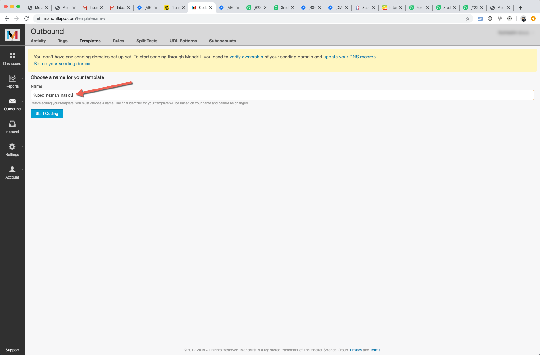 V novem zavihku se vam bo odprl Mandrill