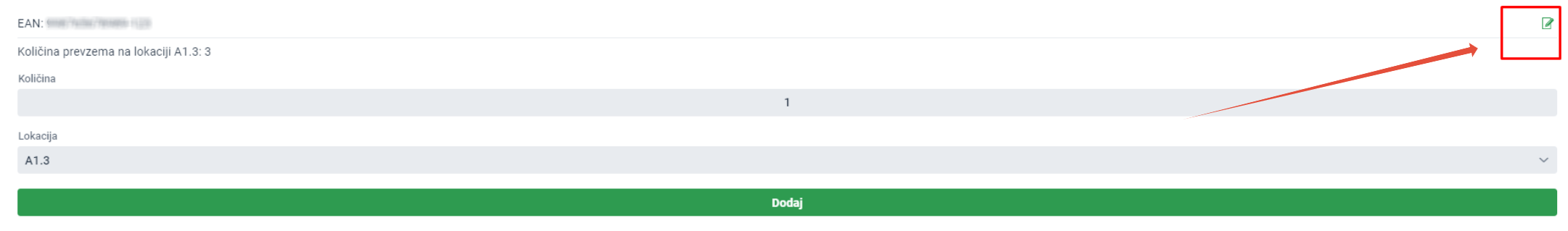 Pri prevzemu lahko spremenite ean kodo artikla, v kolikor se vam le ta spreminja: