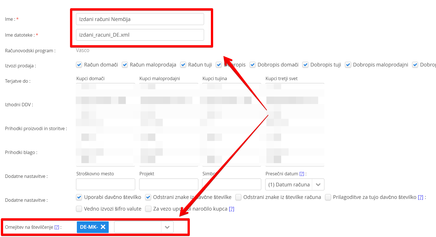V dodatnih nastavitvah nastavite za kateri računovodski program želite napraviti izmenjavo