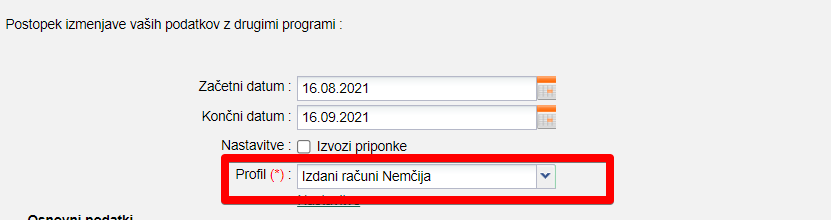 Izmenjavo podatkov izberete Prilagojeno, ko pa kreirate profil izberete računovodski program ki ga uporablja vaše računovodstvo: