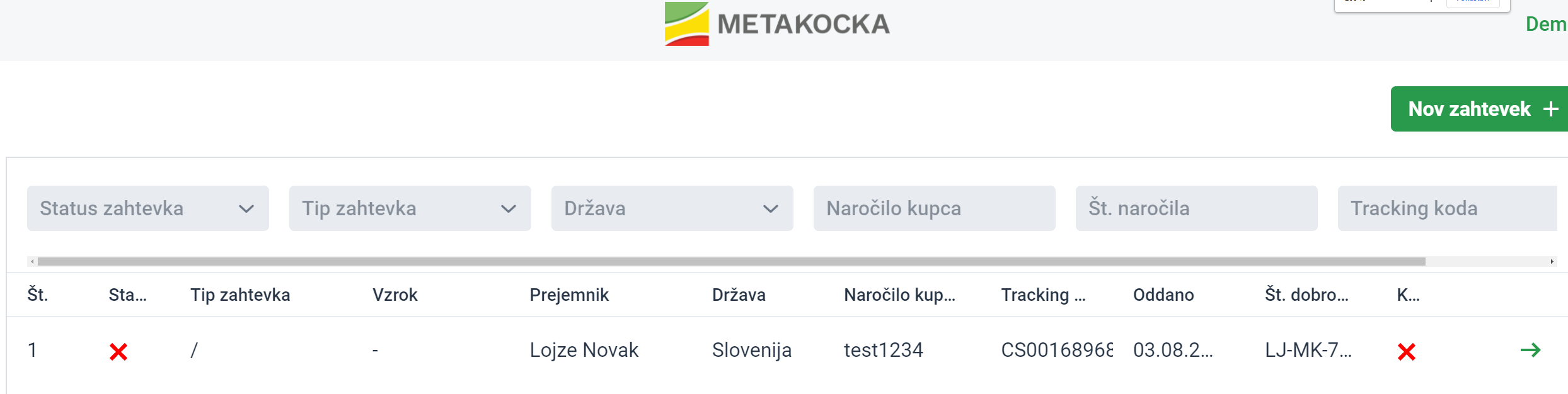 Seznam zahtevkov lahko filtrirate s filtri, da pridobite želene zahtevke.