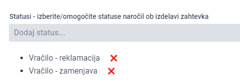 Izberite katere statuse želite uporabljati za zaključene reklamacijske zahtevke
