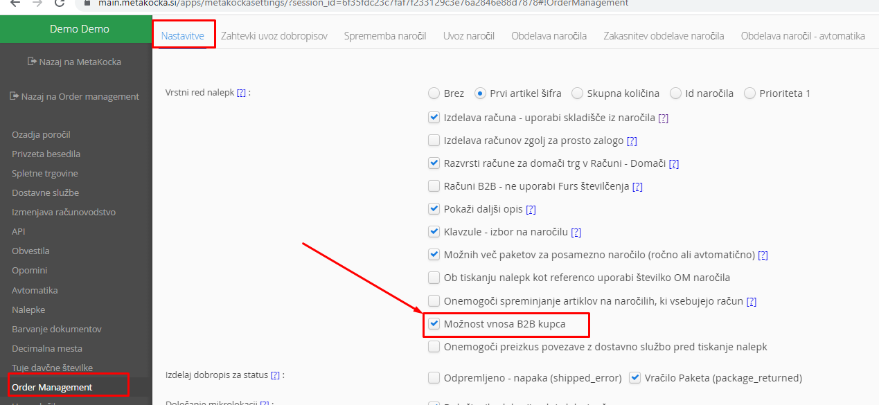 Dodatne nastavitve/OrderManagement/Nastavitve
