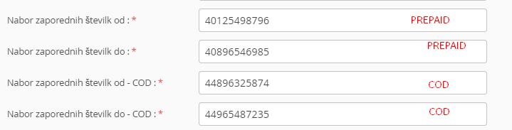 Vpis zaporednih številk za prepaid naročila in COD naročila