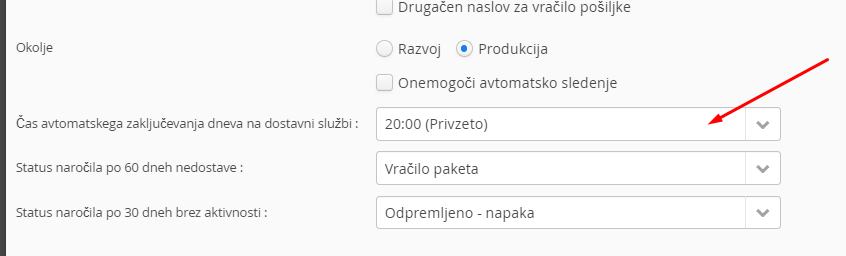 1. Dodajanje dostavne službe v dodatnih nastavitvah: