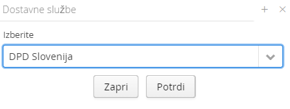 2. Izberete dostavno službo DPD Slovenija ali Hrvaška in jo potrdite:
