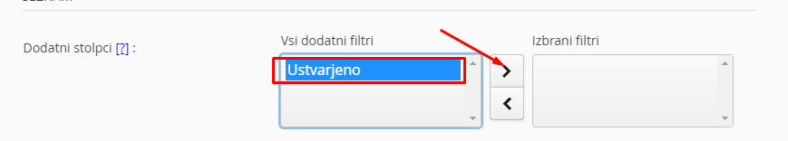V seznamu Dodatni stolpci izberite dodatni filter Ustvarjeno: