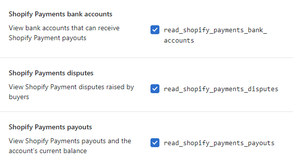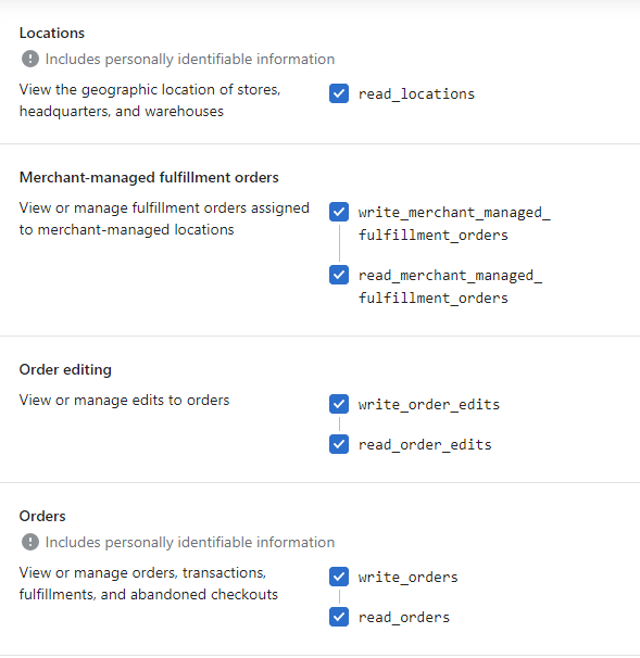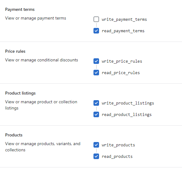 Select the following permissions:
