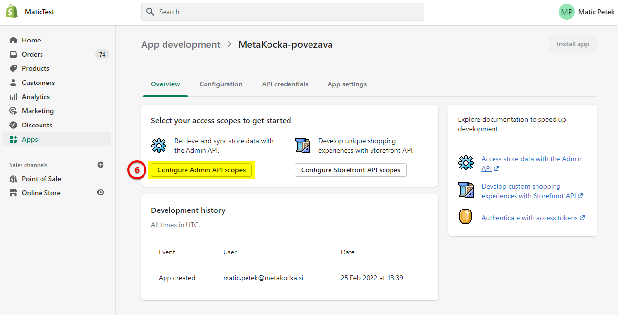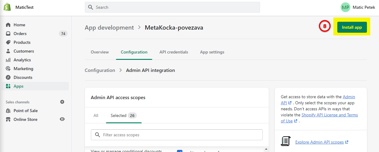 The connection is now active and you will get an Admin API access token. Save the key because it will be shown only once and this is the key we need for integration