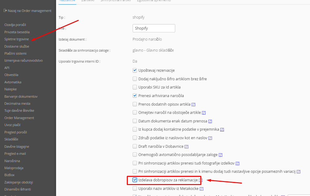 Funkcionalnost vklopite v Dodatne nastavitve/Spletne trgovine: