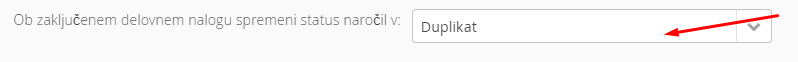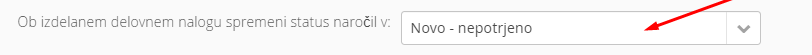 - Ob zaključenem delovnem nalogu spremeni status naročil. Omogoča spremembo statusov naročil, ki so v delovni nalog vključena v izbran status, ko so vse postavke na delovnem nalogu označene kot zaključene: