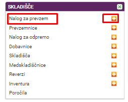 V kolikor se prevzem zaloge vrši direktno preko prevzemnice v čitalcu izberemo Prevzemnica: