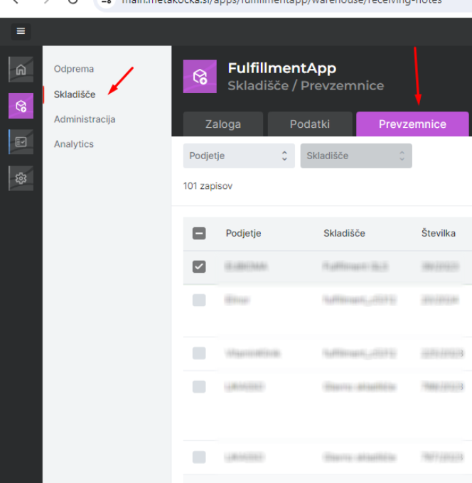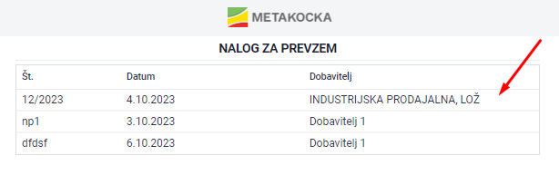 V kolikor podjetje, v svojem profilu kreira nalog za prevzem, torej katere artikle bodo dostavili: