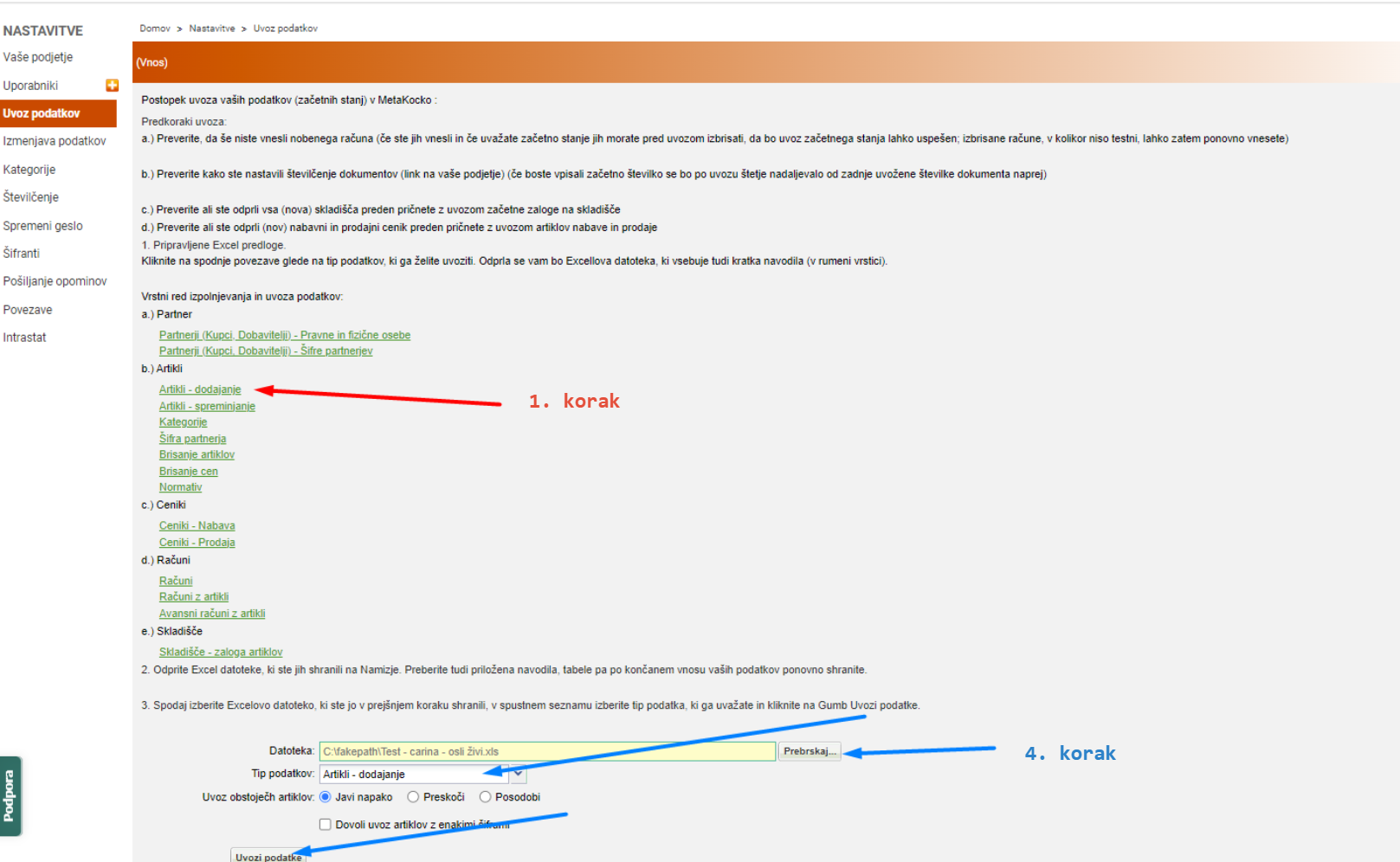I. V nastavitvah izberemo možnost uvoza podatkov